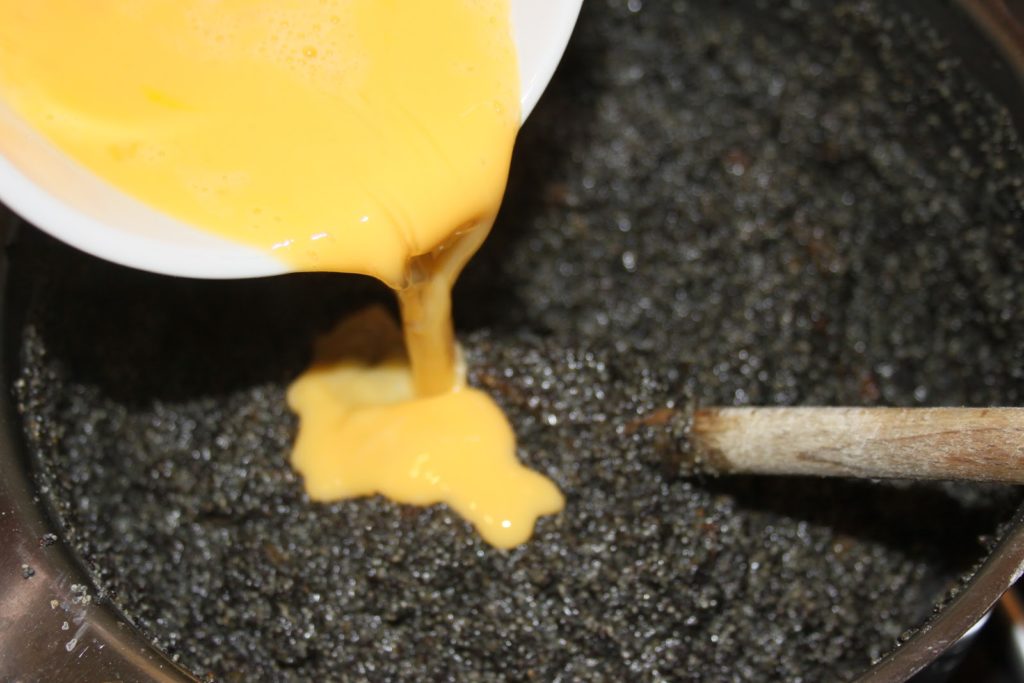 - Ajouter à ce moment l’œuf battu au préalable.