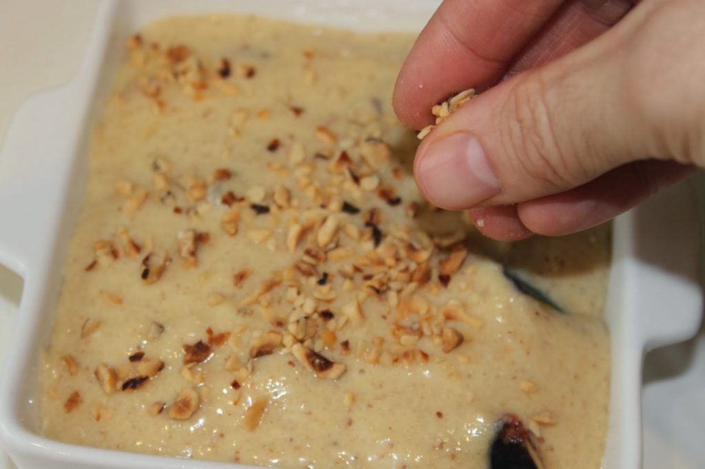 - Le tout doit être assez fluide. Versez la poudre d’amandes, la poudre de noisettes et la maïzena.