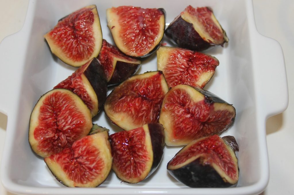 - Lavez et coupez en 4 les figues. Disposez-les dans un grand plat à gratin ou dans 4 plus petits.