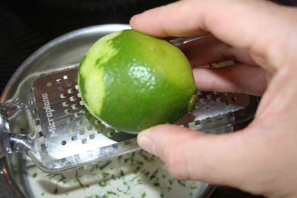 - Grattez finement le zeste d’un citron vert. Le mieux est de le faire avec une râpe microplane.