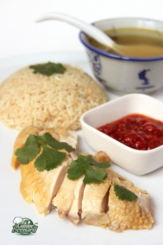 - Pour le manger: servir le poulet avec de la coriandre hachée dessus (plus que sur la photo !), le riz parfumé, un bol de bouillon de poulet bien brûlant et des sauces pour agrémenter le tout : sauce au piment et à l’ail, sriracha, sauce de soja sucrée. Pour cette dernière, il suffit d’aller ma recette clone de la délicieuse sauce thaïe dans la recette du poulet aux feuilles de pandanus ICI !