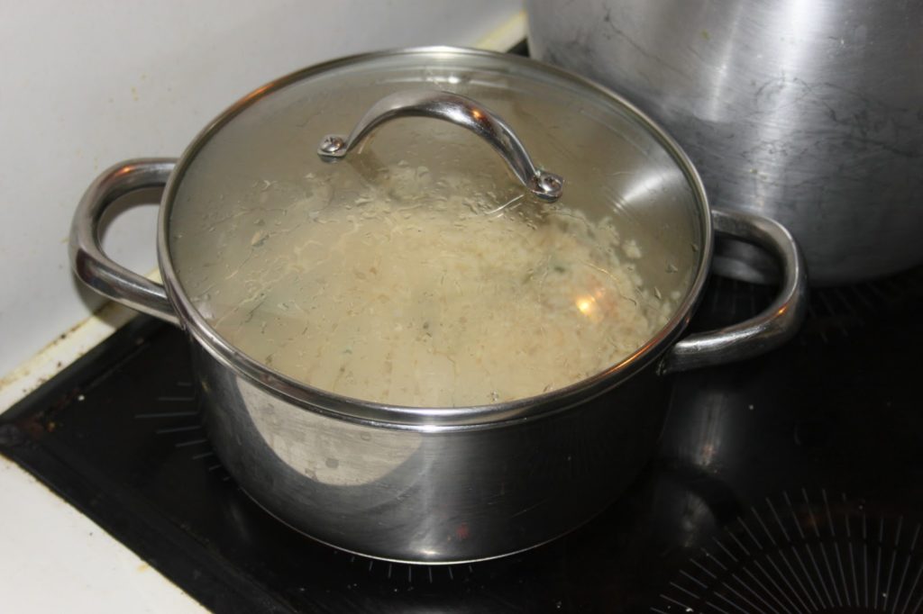 - Fermer le couvercle et laisser cuire jusqu’à absorption complète du bouillon par le riz.