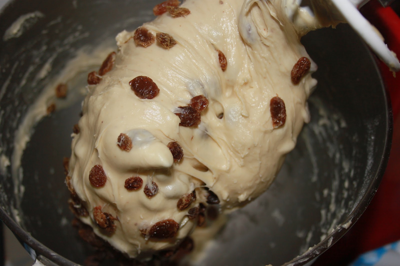 - Pendant ce temps, laisser tremper les raisins dans de l’eau chaude avec un ou deux bouchons de rhum ambré.