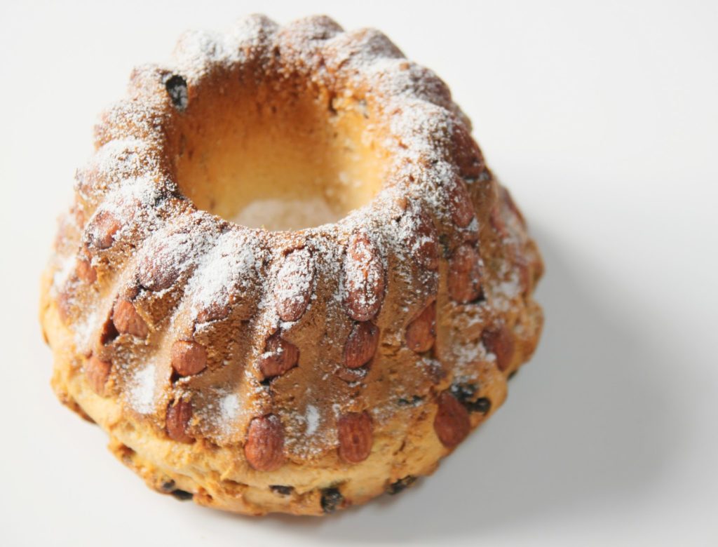 À la demande de Maud Maillard, j’ai réalisé un kouglof pour que l’on en fasse des photos culinaires. Vous trouverez ses photos à la fin de la recette. Je ne les ai pas mises en avant à cause de la tête de mon premier kouglof qui s’était un peu dégonflé après la cuisson (je ne l’avais tout simplement pas assez cuit!!). Je vous propose une recette de kouglof qui s’avère être extrêmement simple à réaliser, si tant est que l’on possède un robot type kitchenaid ou kenwood. Sinon, il faudra de l’huile de coude, mais rien de bien difficile! Il faut juste de bonnes proportions. Je vous propose ma version qui ne gonfle exprès pas trop, pour avoir une mie riche sans être lourde et pour bien se différencier de la brioche plus riche en beurre, mais plus levée.