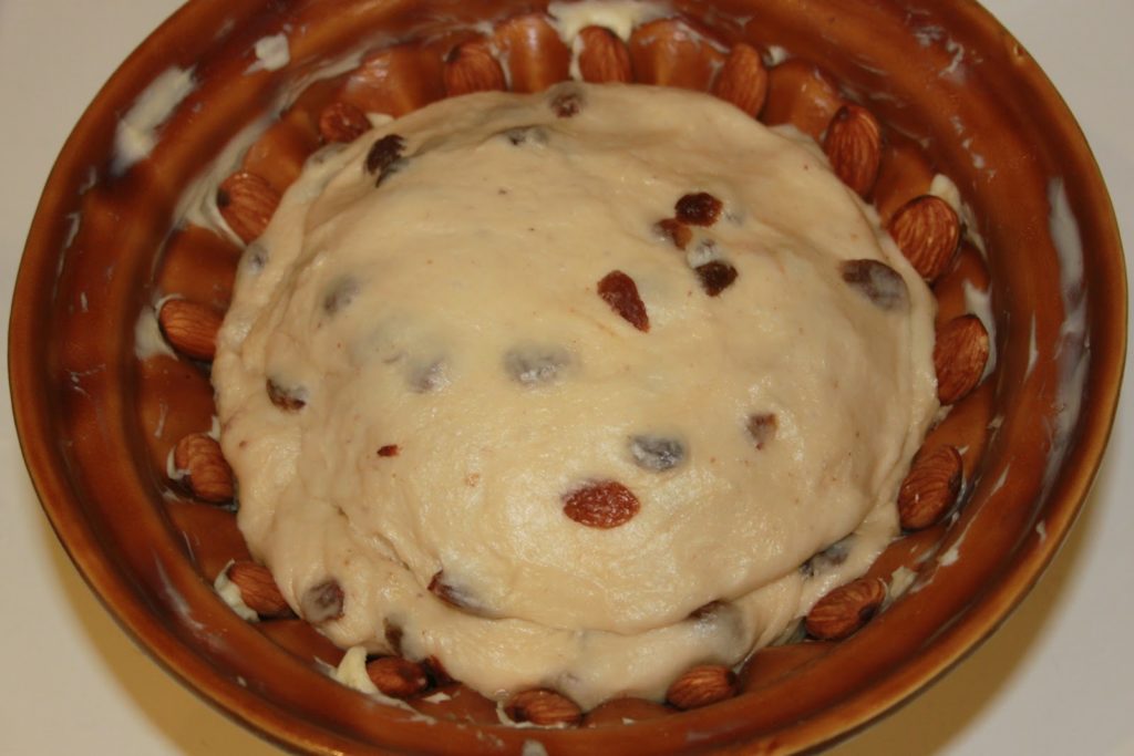 Beurrer largement un moule à Kouglof. On peut disposer des amandes dans les rainures du moule. Dans ce cas, il faut pas mal de beurre pour les coller.