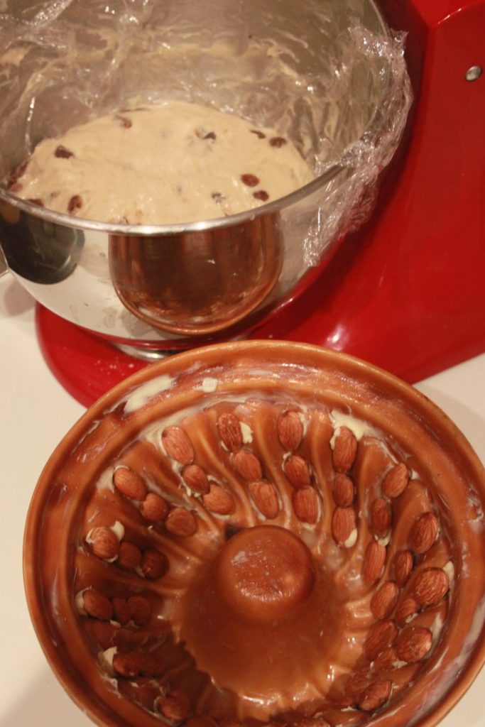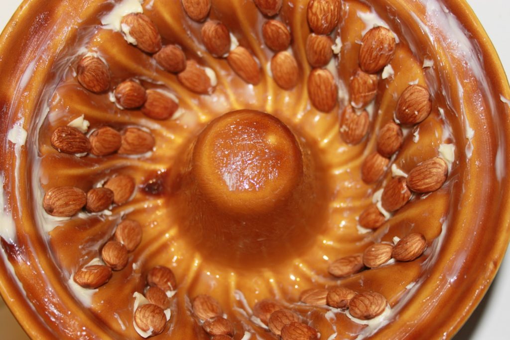 - Beurrer largement un moule à Kouglof. On peut disposer des amandes dans les rainures du moule. Dans ce cas, il faut pas mal de beurre pour les coller.