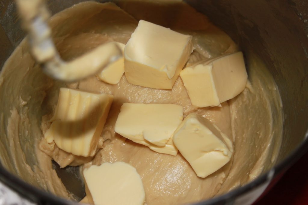 Ajouter le beurre à température ambiante, coupé en morceaux.