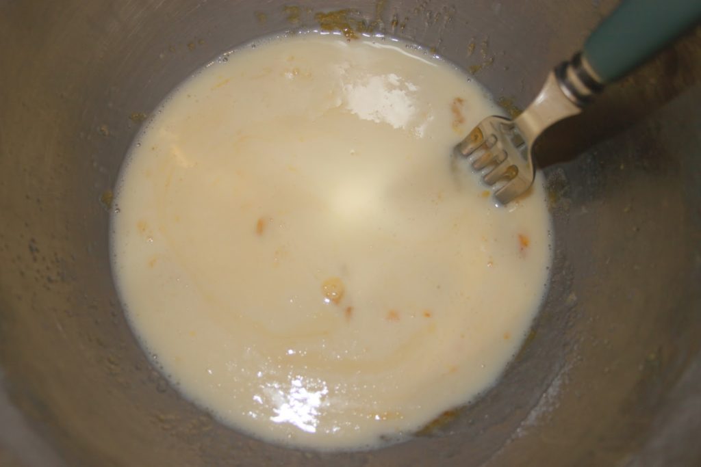- Ajouter la farine sur le mélange oeufs-sucre, puis ajouter la levure diluée.