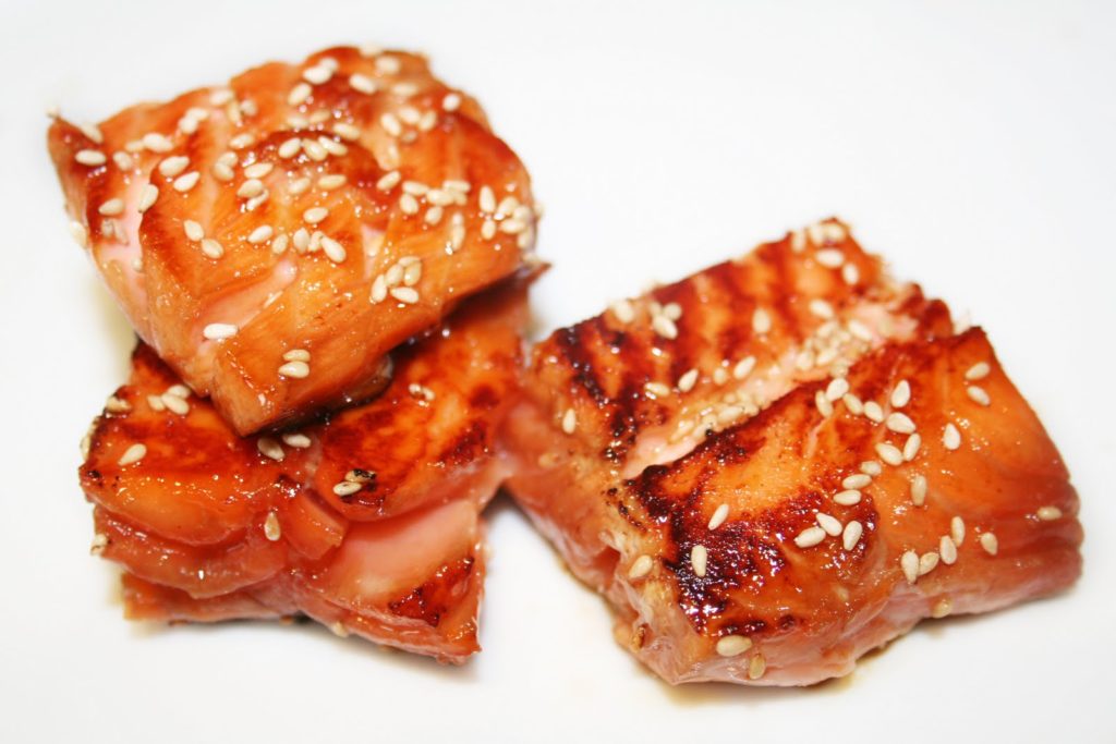 Voilà une façon originale de manger du saumon. Je vous propose de laisser mariner le saumon dans une sauce teriyaki maison encore chaude. Il ne restera plus qu’à cuire rapidement le saumon qui sera caramélisé en surface et délicieusement tendre et à peine cuit à l’intérieur!