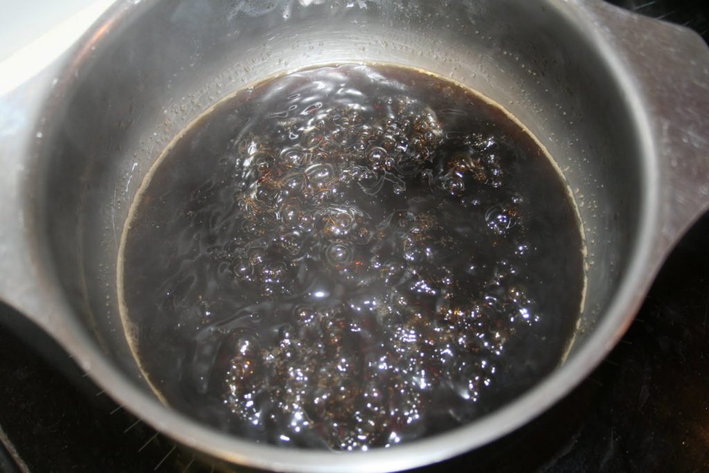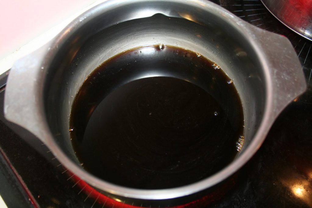 Voici donc la sauce mirin qui à la base de la sauce teriyaki. Mais on peut aussi acheter une sauce teriyaki toute prête, la seule différence est que cela coûte beaucoup moins cher de la préparer soi-même!