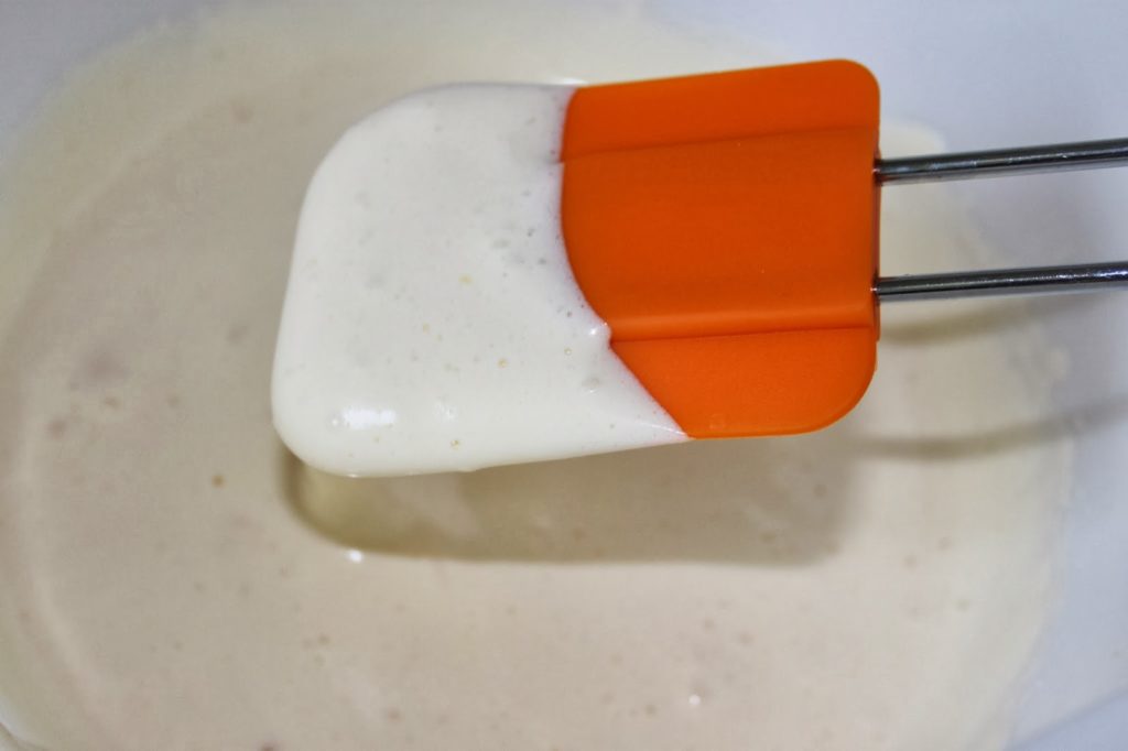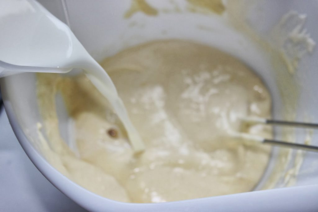 Finissez par le lait. Vous pouvez utiliser un fouet manuel pour éviter les grumeaux et alterner entre un peu de lait et un peu de farine au lieu d’ajouter toute la farine d’un coup. Toutes les techniques sont bonnes pour éviter les grumeaux ! N’oubliez pas la fleur d’oranger. Adaptez-la à votre propre goût !