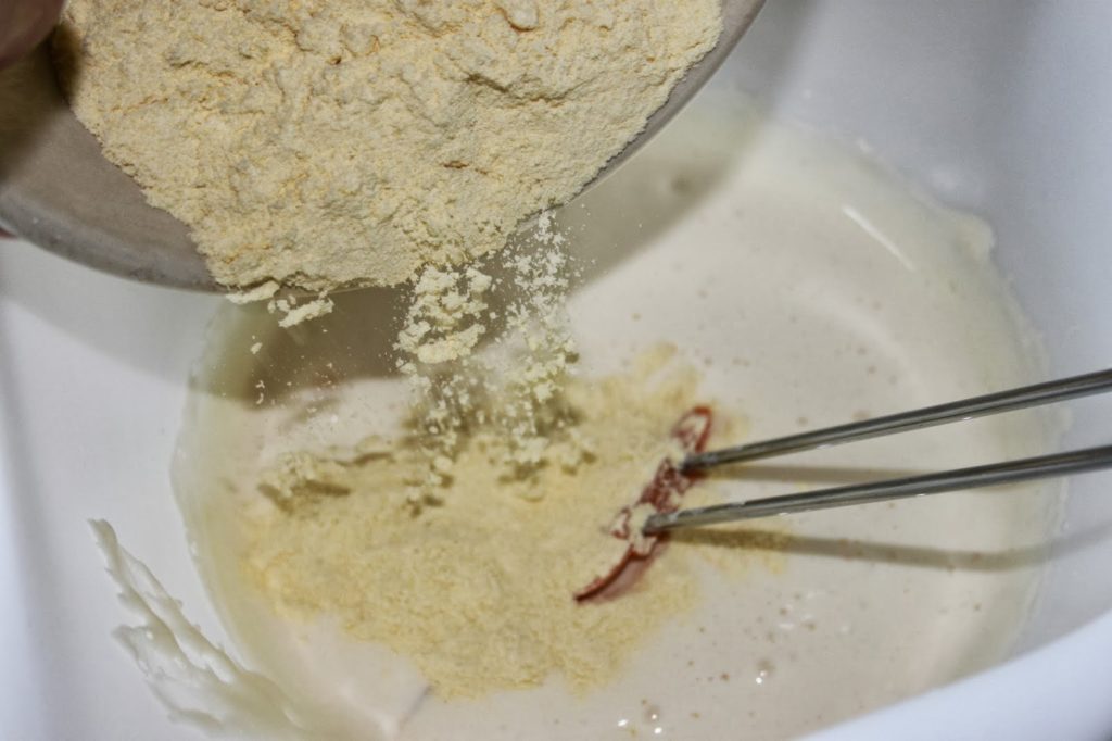 Finissez par le lait. Vous pouvez utiliser un fouet manuel pour éviter les grumeaux et alterner entre un peu de lait et un peu de farine au lieu d’ajouter toute la farine d’un coup. Toutes les techniques sont bonnes pour éviter les grumeaux !N’oubliez pas la fleur d’oranger. Adaptez-la à votre propre goût !