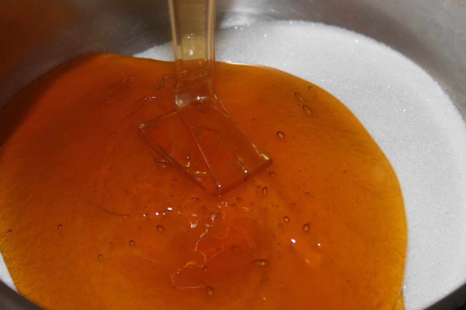 Poner el azúcar en un cazo grande y añadir el almíbar.