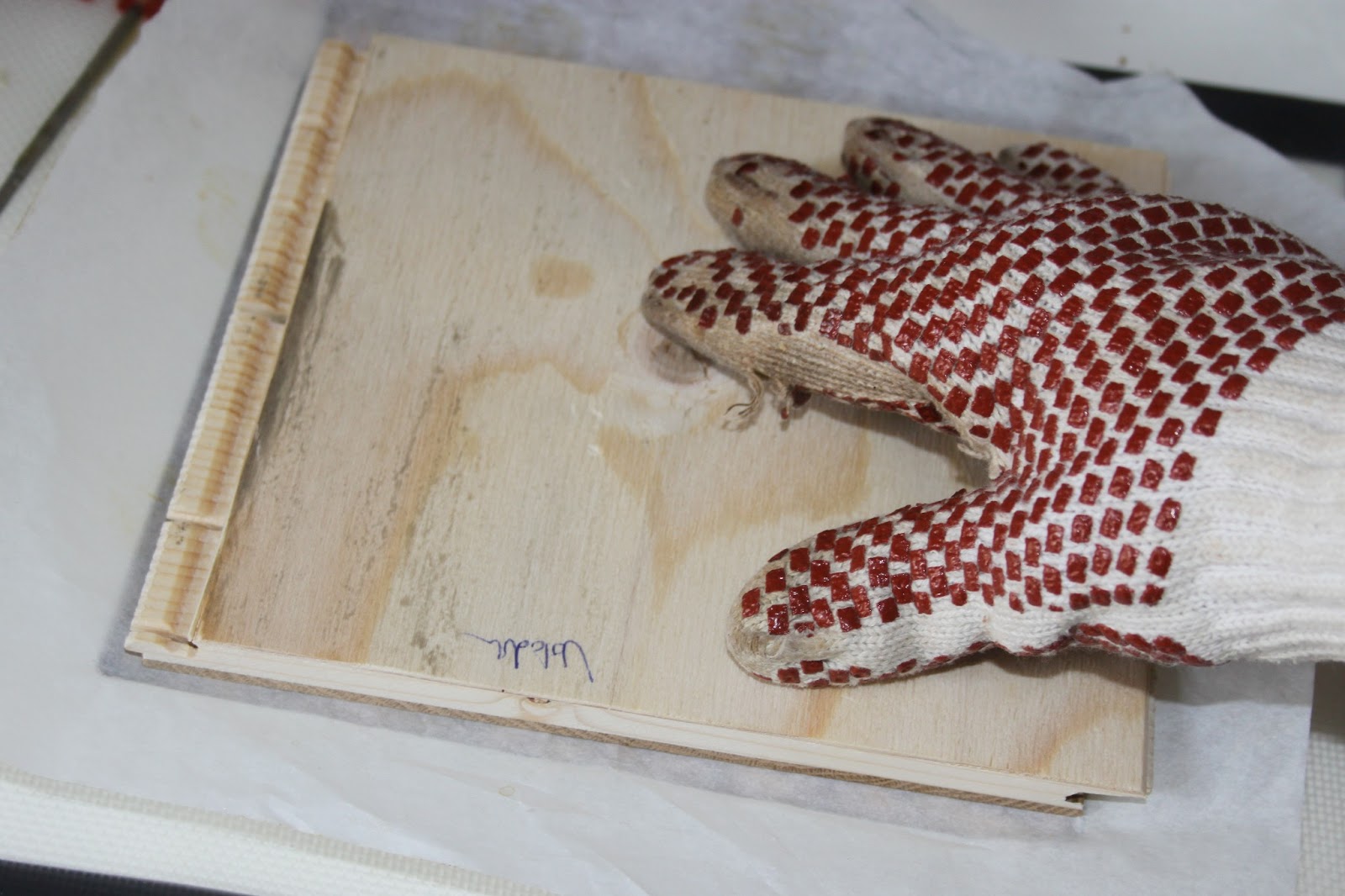 Incluso me ayudo con una pequeña tabla de madera del tamaño del marco para aplanarlo.