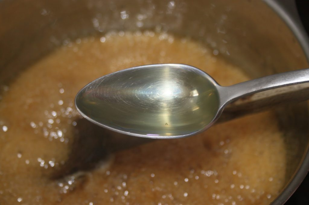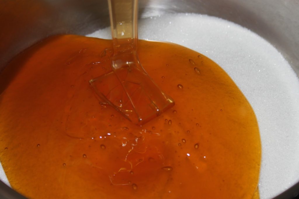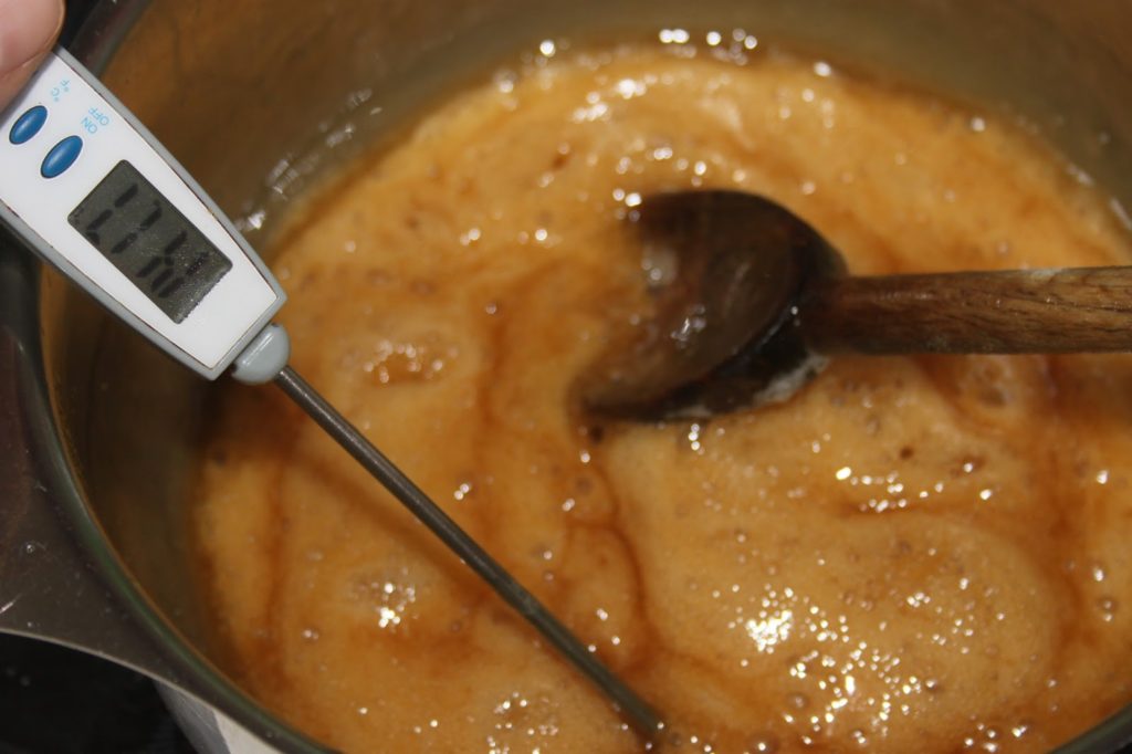 - Il faut mélanger le sirop régulièrement avec une cuiller en bois. Il faut aller jusqu’à 145°C. On a donc un peu de temps devant soi.
