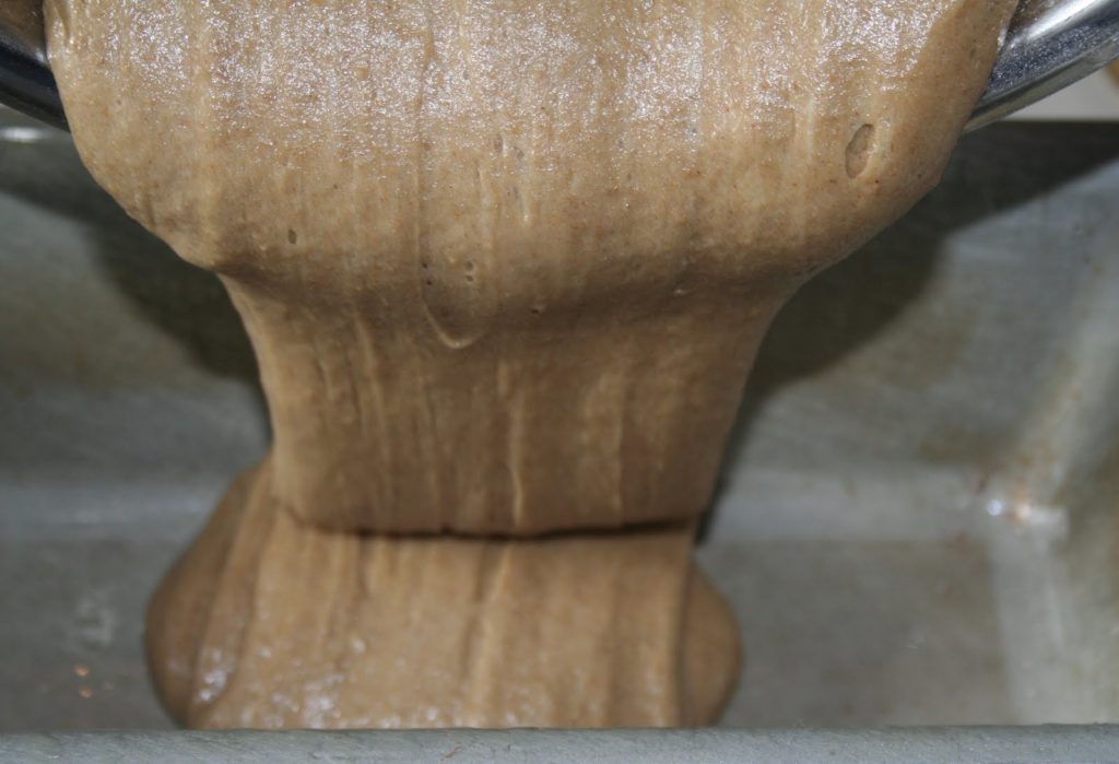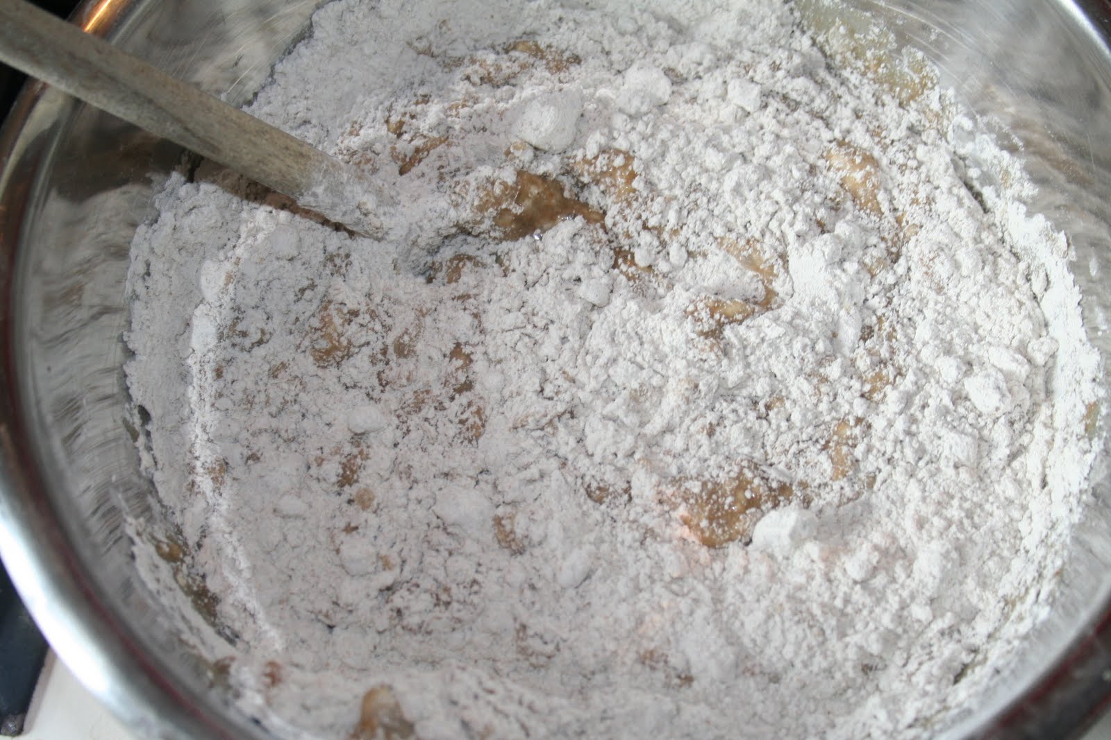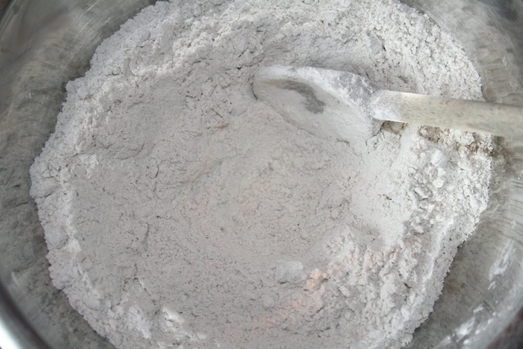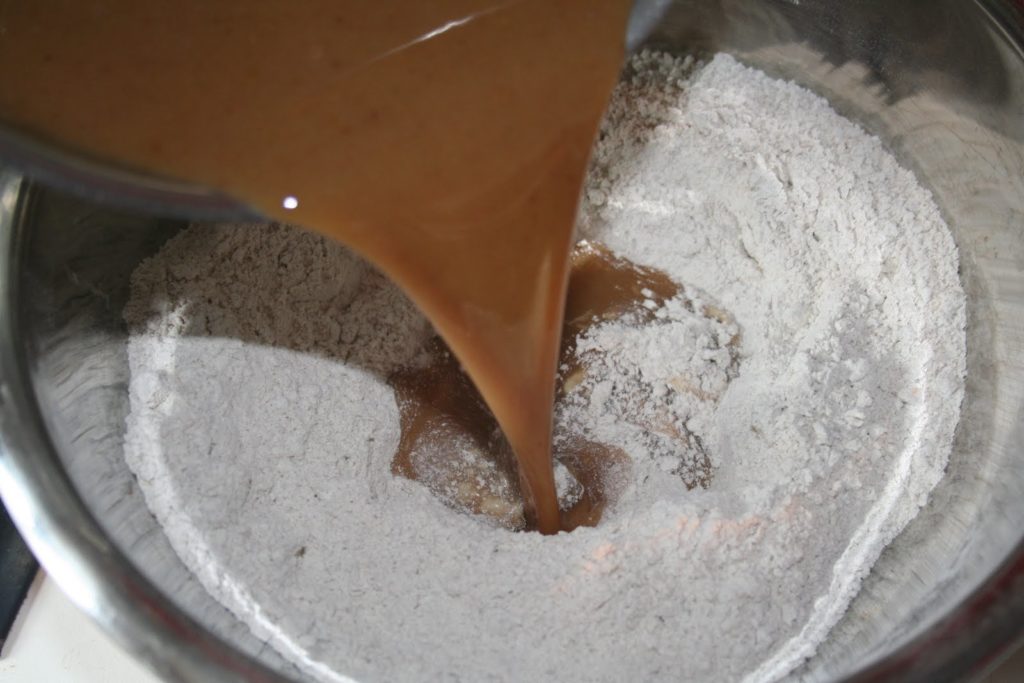 Bien mélanger. L’huile d’olive va aglomérer un peu la farine mais quand on ajoute le lait au miel épicé, tout va se dissoudre!