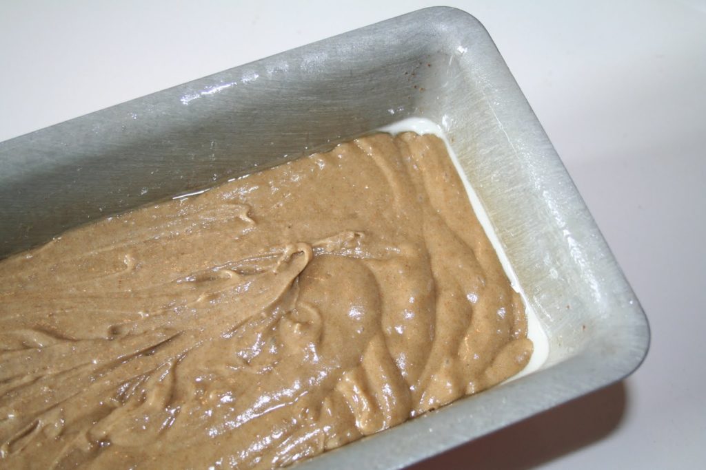 Préchauffer le four à 150°C. Verser la pâte dans un moule à cake de grande taille. Je l’ai simplement, comme à mon habitude, graissé avec la bombe de démoulage que j’utilise pour les canelés.
