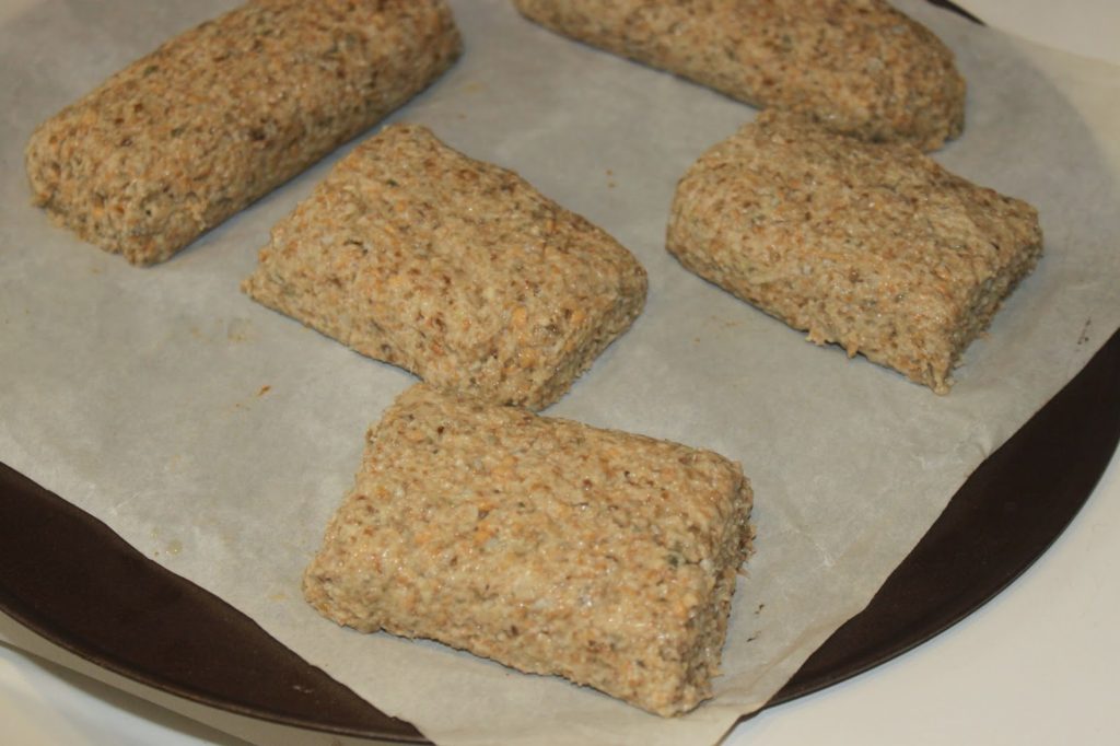 - Placez les pains sur une plaque allant au four, sur du papier sulfurisé. La pâte colle un peu moins en quelques minutes car les flocons d’avoine assèchent un peu la pâte… Mais elle est quand même fragile !
