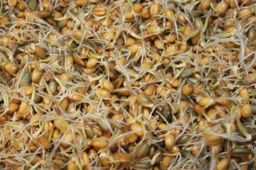 -la totalité des graines germées après deux jours (elles doublent de poids, donc 480g au total)