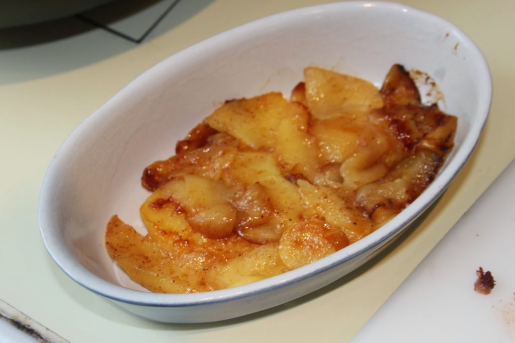 - Remplissez maintenant votre plat. Mettez une couche de pommes poêlées.
