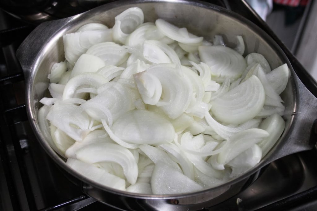 - L’eau va disperser les sucs dans tous les oignons. Laissez cuire jusqu’à avoir une belle couleur et que les oignons soient bien cuits.