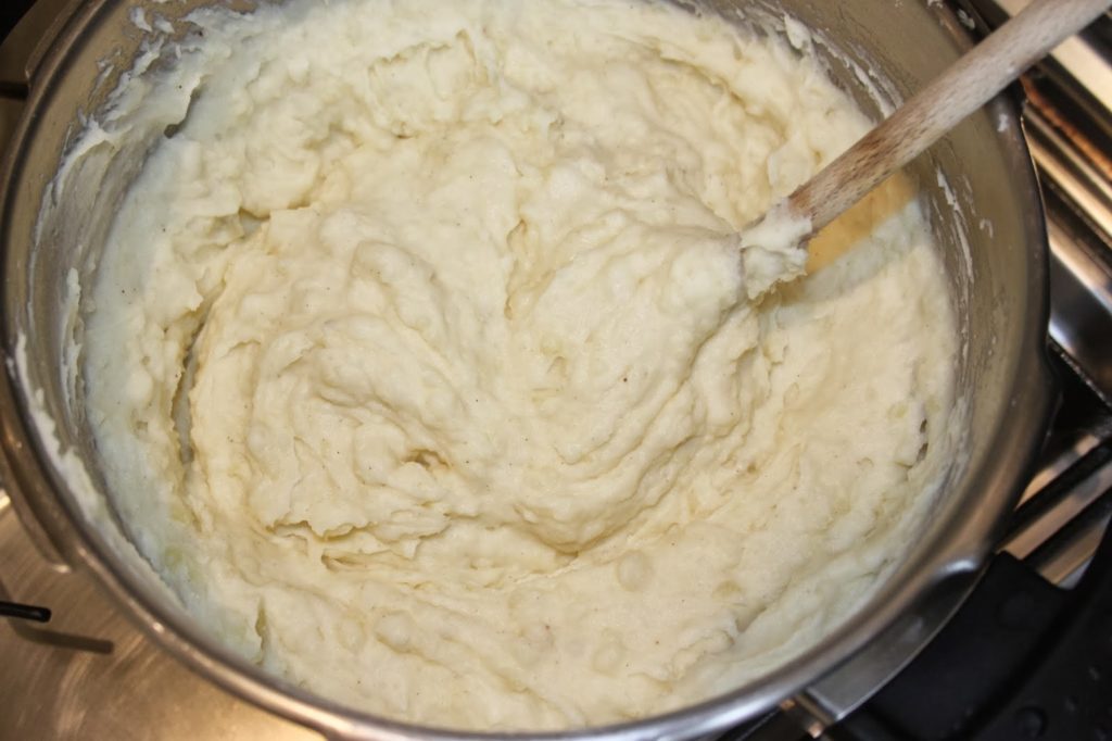 Puis ajoutez le lait pour arriver à la consistance de purée que vous aimez le plus.