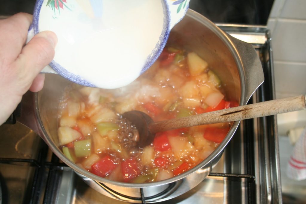 - Ajouter au bout de ces 10 minutes, la maïzena diluée et les 50g d’eau si la sauce épaissit trop.