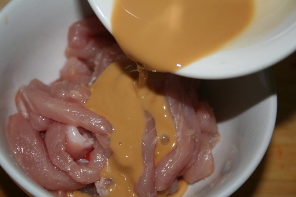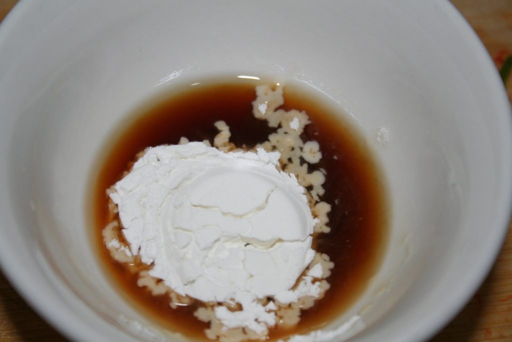 - Commencer par préparer la marinade en mélangeant bien tous les ingrédients, à savoir la sauce de soja claire, le vin chinois et la maïzena.