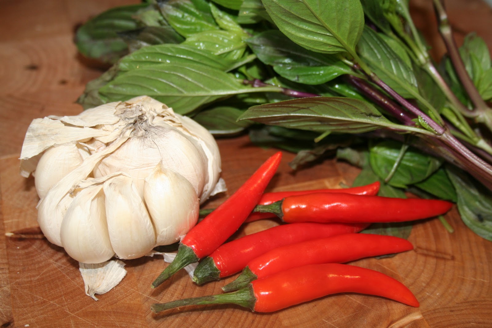Préparer tous les ingrédients spécifiques à cette recette. Le basilic thaï est très particulier et ne peut pas être remplacé par du basilic de chez nous…