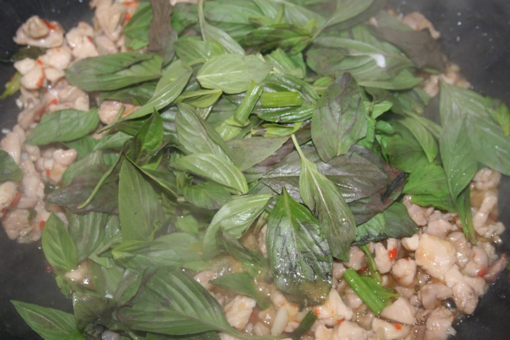 Puis les feuilles de basilic thaï.