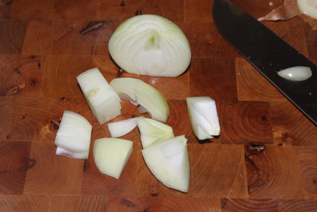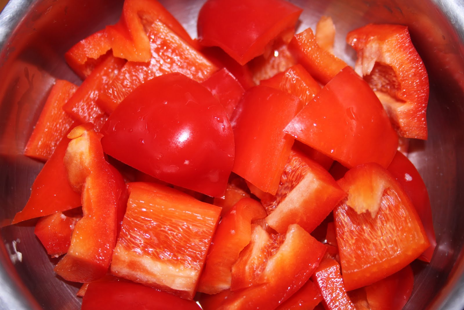 - Couper les poivrons rouges en gros morceaux, en ayant pris soin d’enlever les graines.