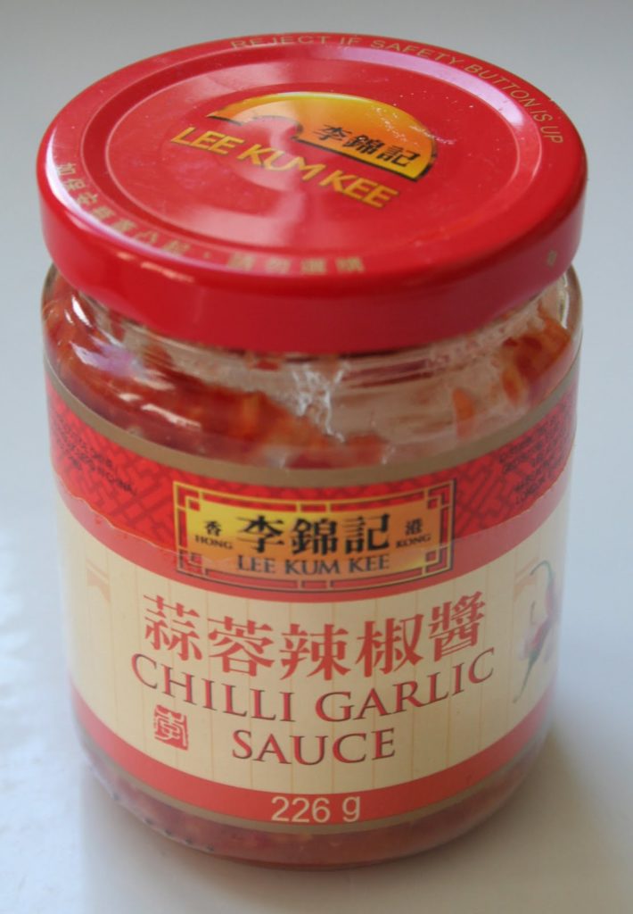 - Préparer la sauce. Voici la sauce à l’ail et au piment, on peut la trouver dans toutes les épiceries asiatiques. On peut la remplacer par de la pâte de piment rouge, plus concentrée. Il faudra alors en mettre moitié moins.