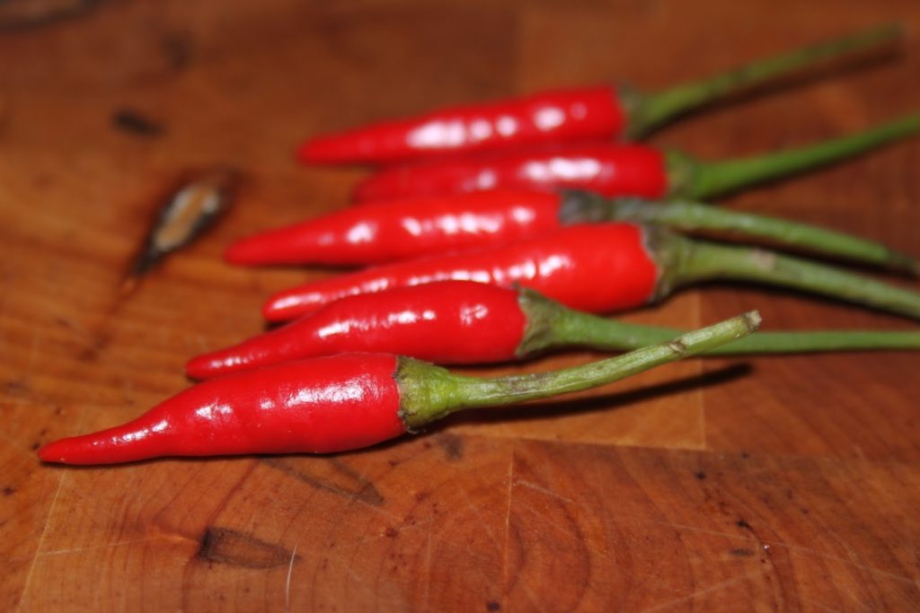 - Prendre des gants en latex pour se protéger les mains en coupant les piments oiseaux… Il suffit d’enlever la queue, de les couper en deux dans la longueur et d’enlever les graines.