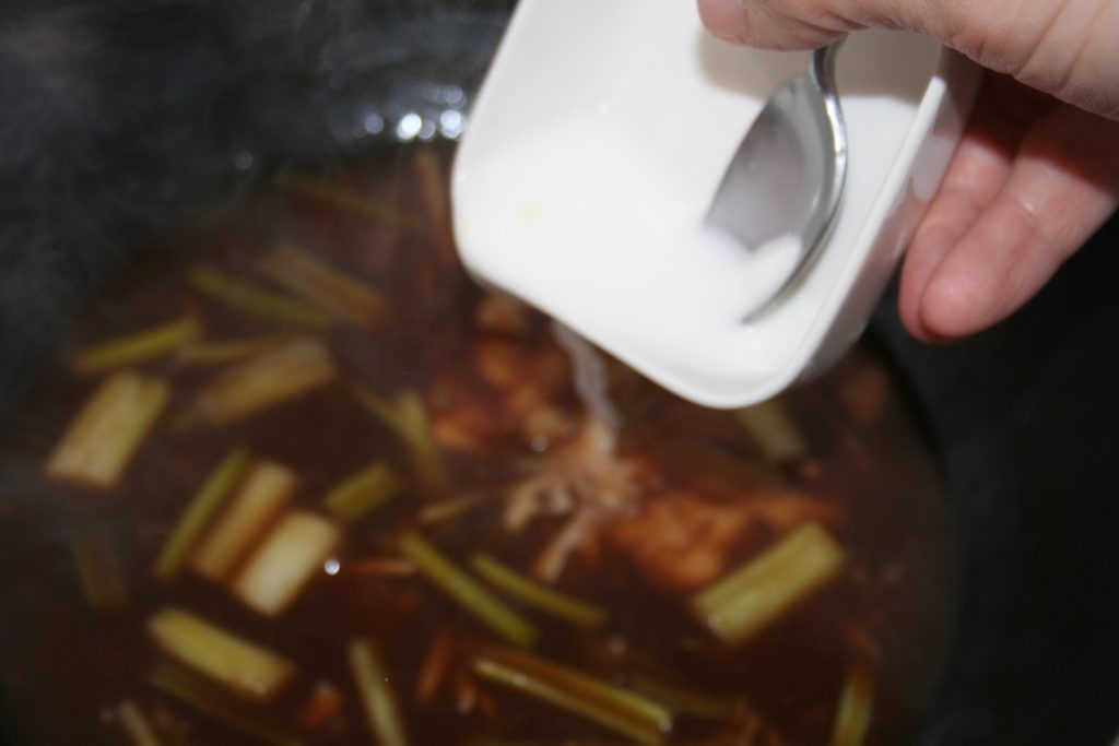Ajouter en suite la maïzena diluée dans un peu d’eau pour épaissir la sauce.