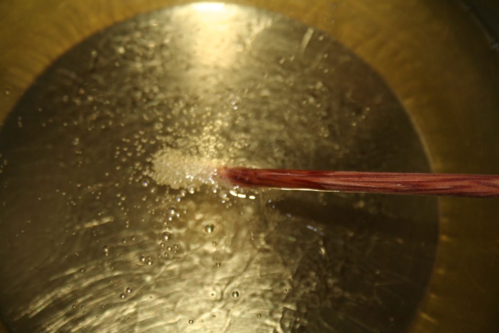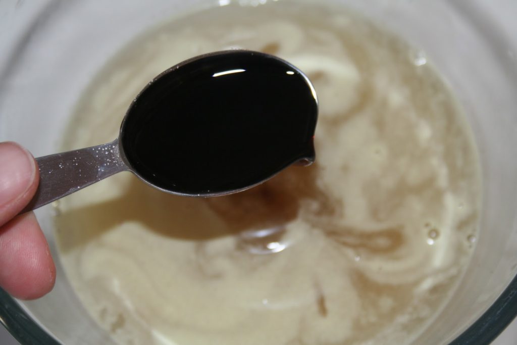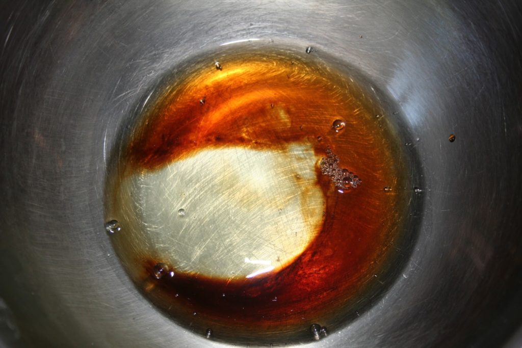 - Préparer le bouillon de volaille. Aux Etats-Unis, ils vendent du bouillon déjà prêt en brique. En France, j’ai simplement acheté du bouillon de volaille en poudre que j’ai dilué comme indiqué (1 cuillerée à café pour 100ml d’eau). Ajouter le sucre.