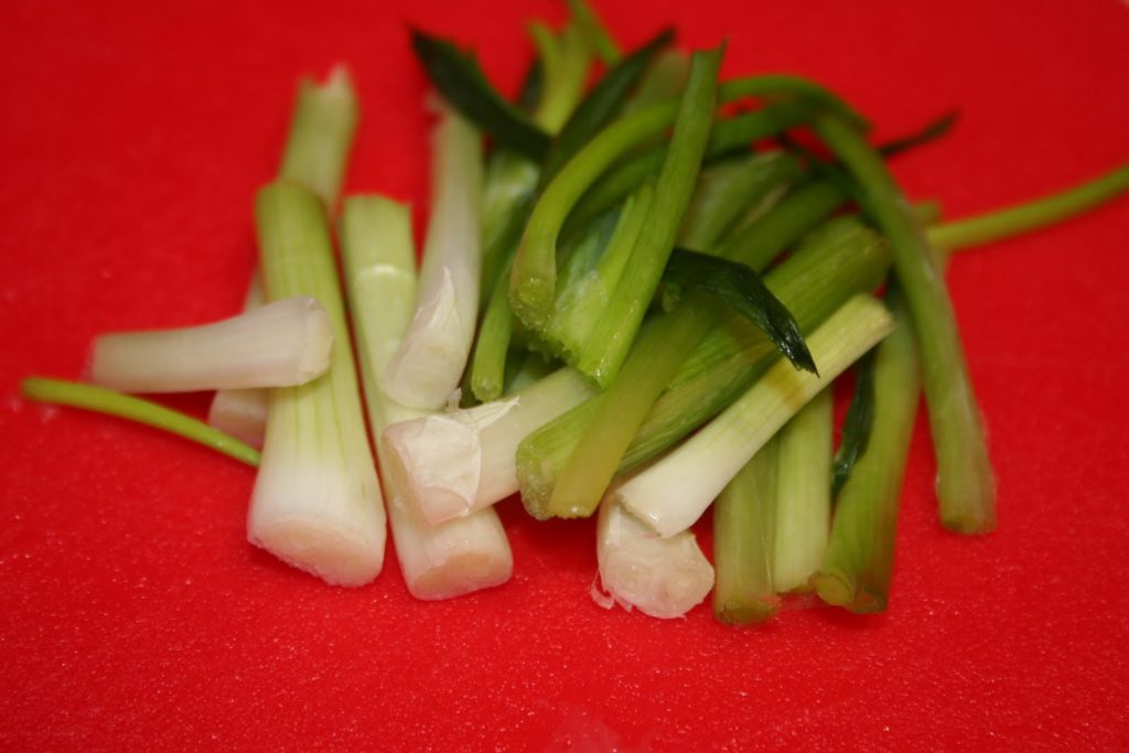 - Ne pas oublier de couper la ciboule chinoise. Des morceaux grossiers suffisent!