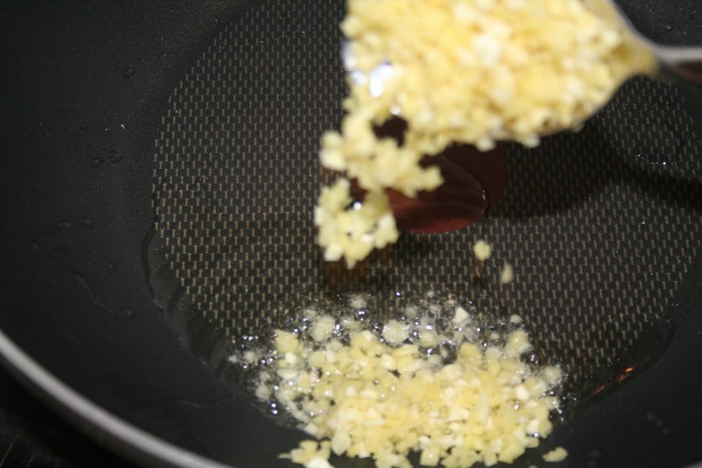 - Ajouter dans cette huile pimentée deux cuillerées à soupe du mélange haché ail/gingembre.
