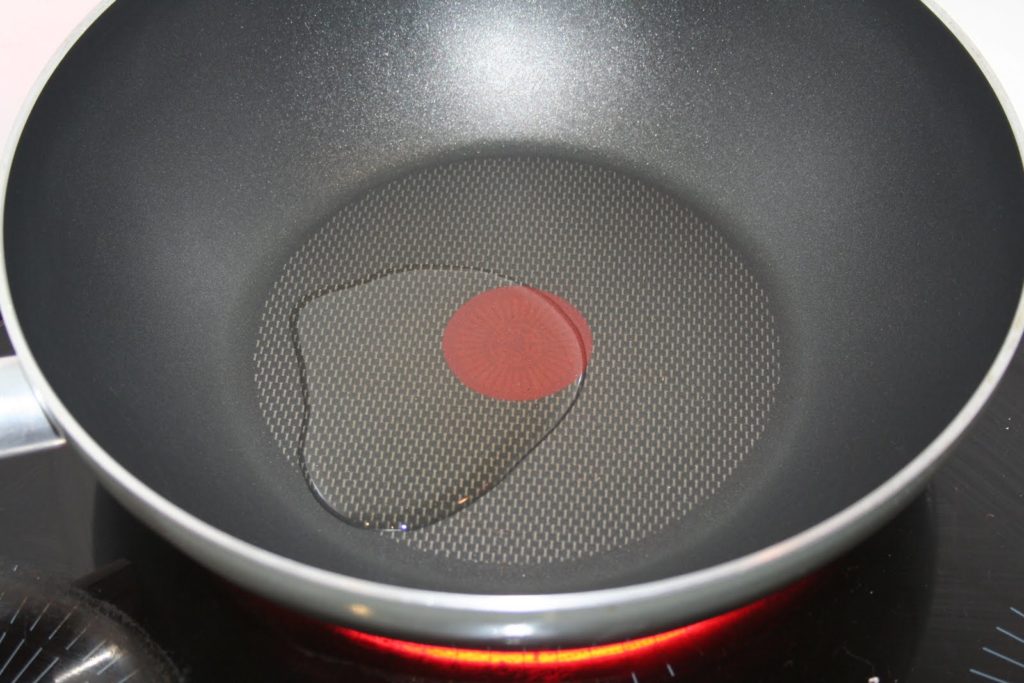 - Mettre 2 ou 3 cuillerées à soupe d’huile dans un wok et mettre sur feu fort.