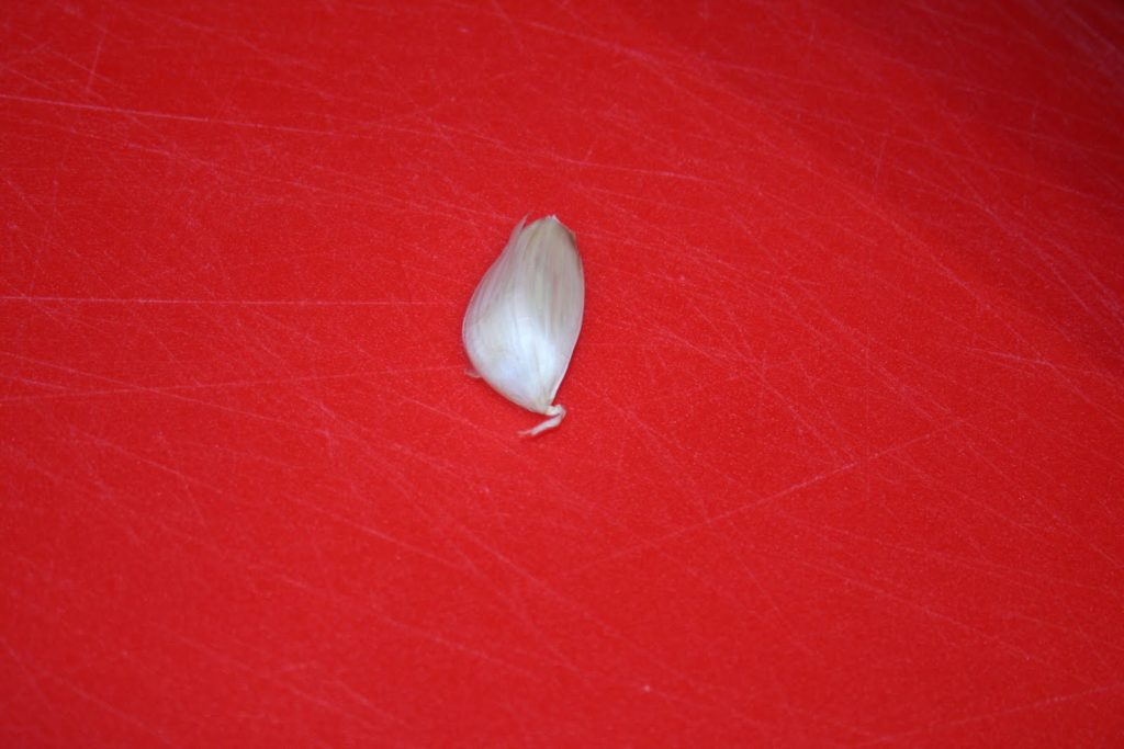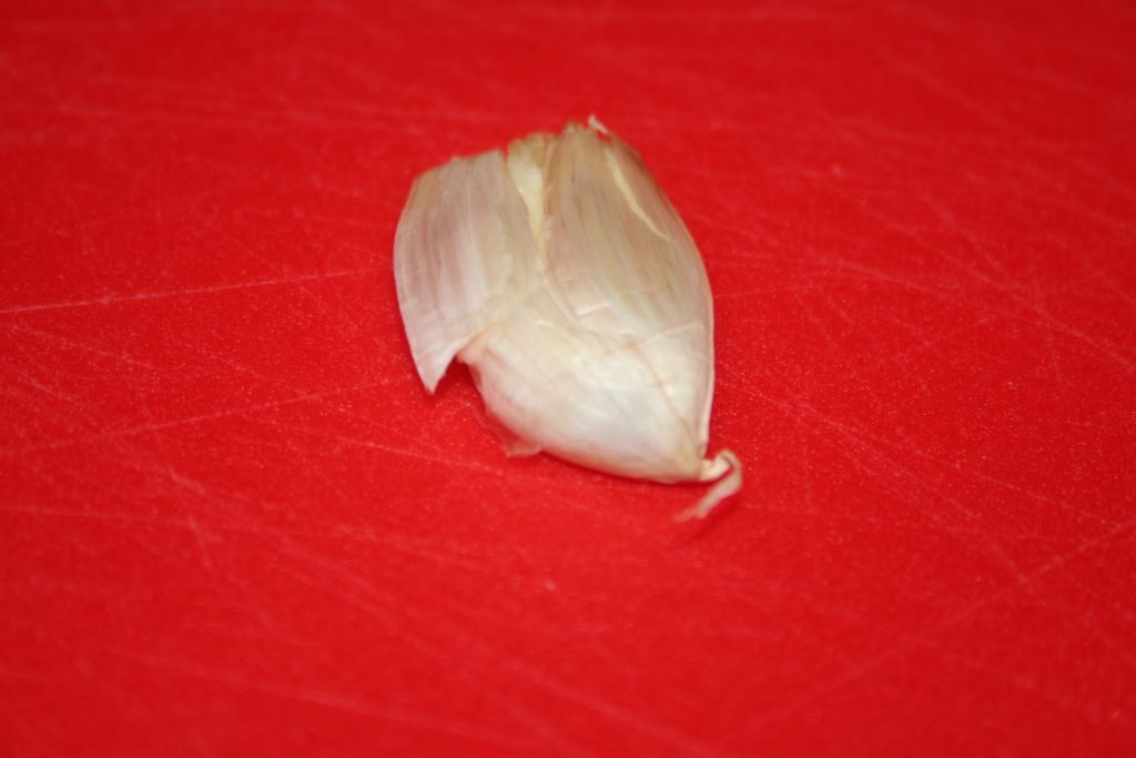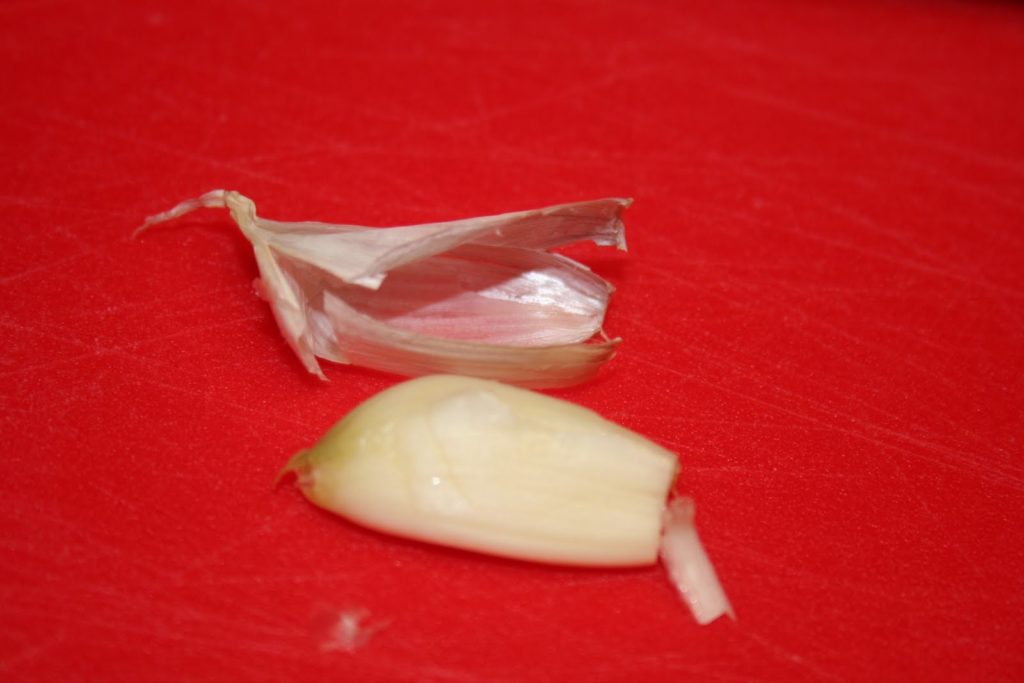 Voici en photos une façon d’éplucher l’ail en l’écrasant sous la lame d’un couteau. Cela se fait en quelques secondes!