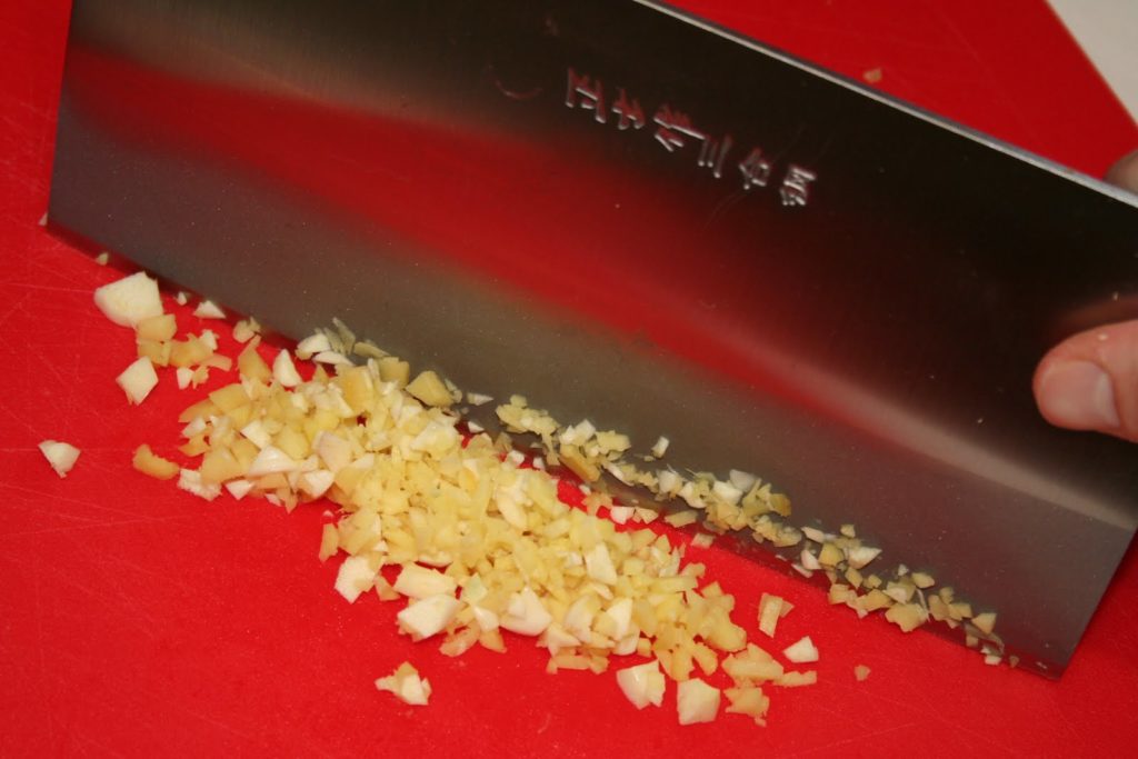 - Hacher ensuite l’ail et le gingembre ensemble.