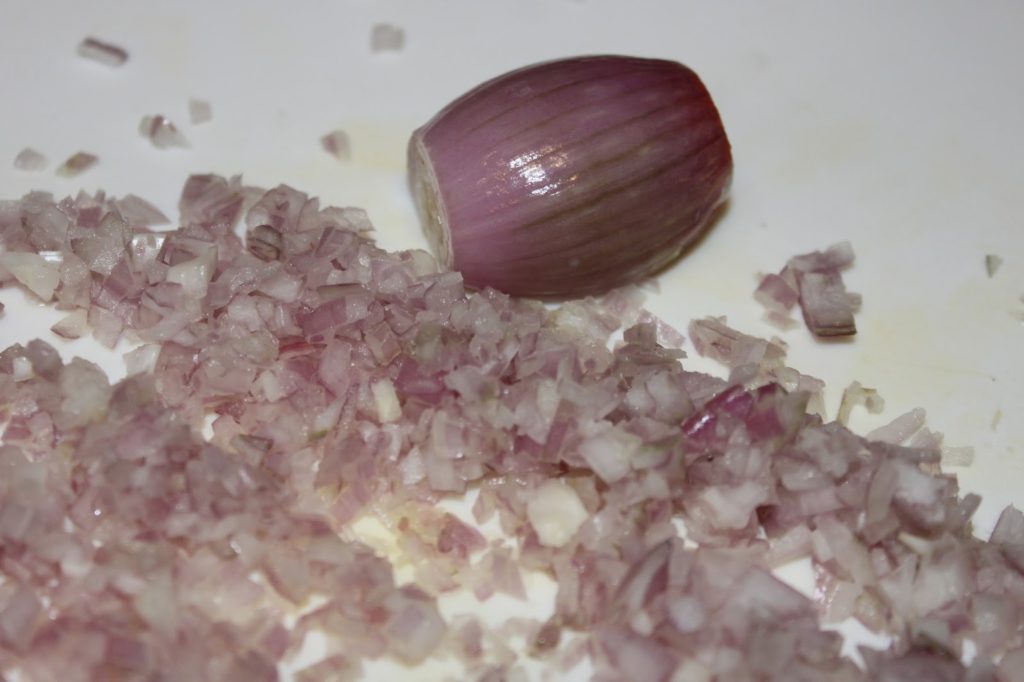 - Hachez finement l’échalote.