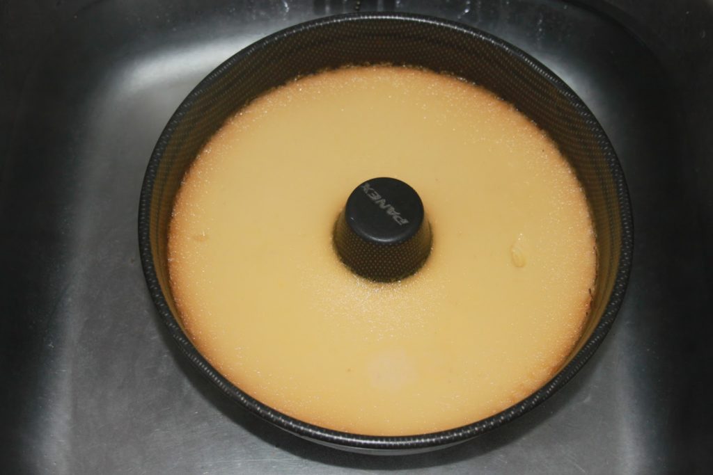 - Quand le caramel est prêt, le verser dans un moule (avec un trou au milieu, ce sera le top de la tradition!).