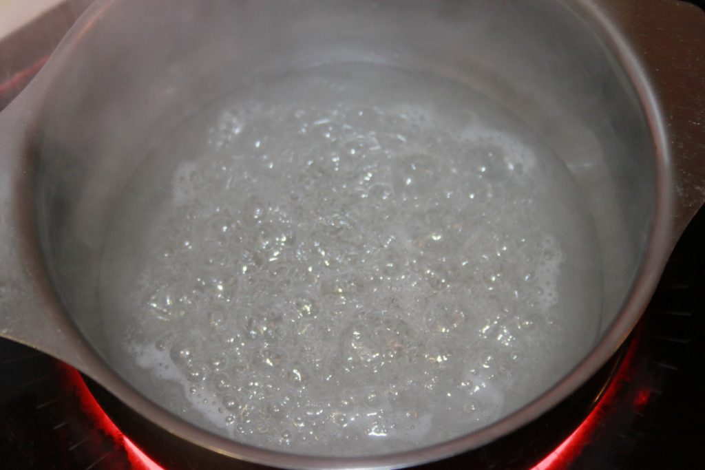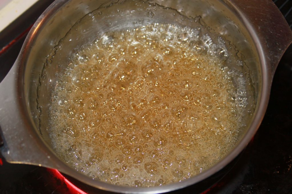 Mettre le sucre dans une casserole avec un peu d’eau (30g) et porter à ébullition.
