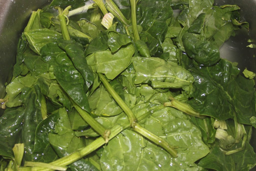 Laver les feuilles d’épinards avec précaution. Je remplis mon évier d’eau, je lave bien les feuilles, puis je les rince.