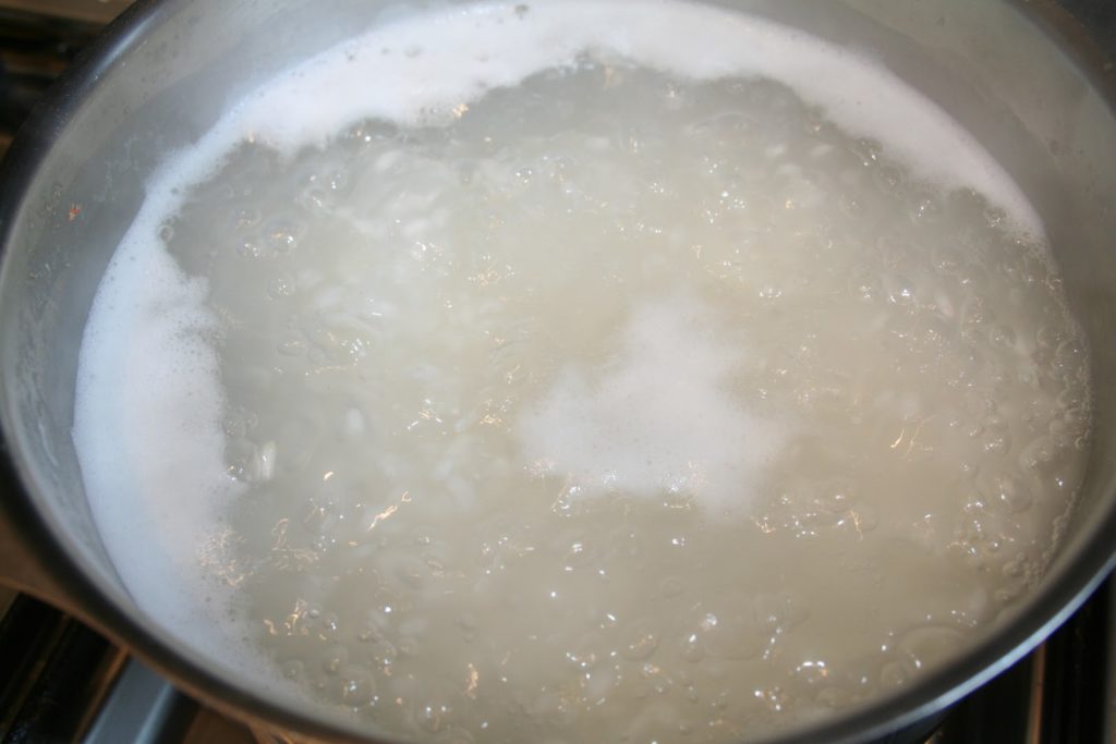 - Faites cuire le riz dans de l’eau bouillante pendant 5 minutes.