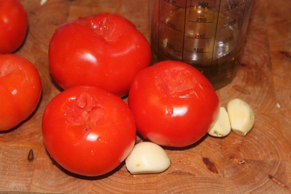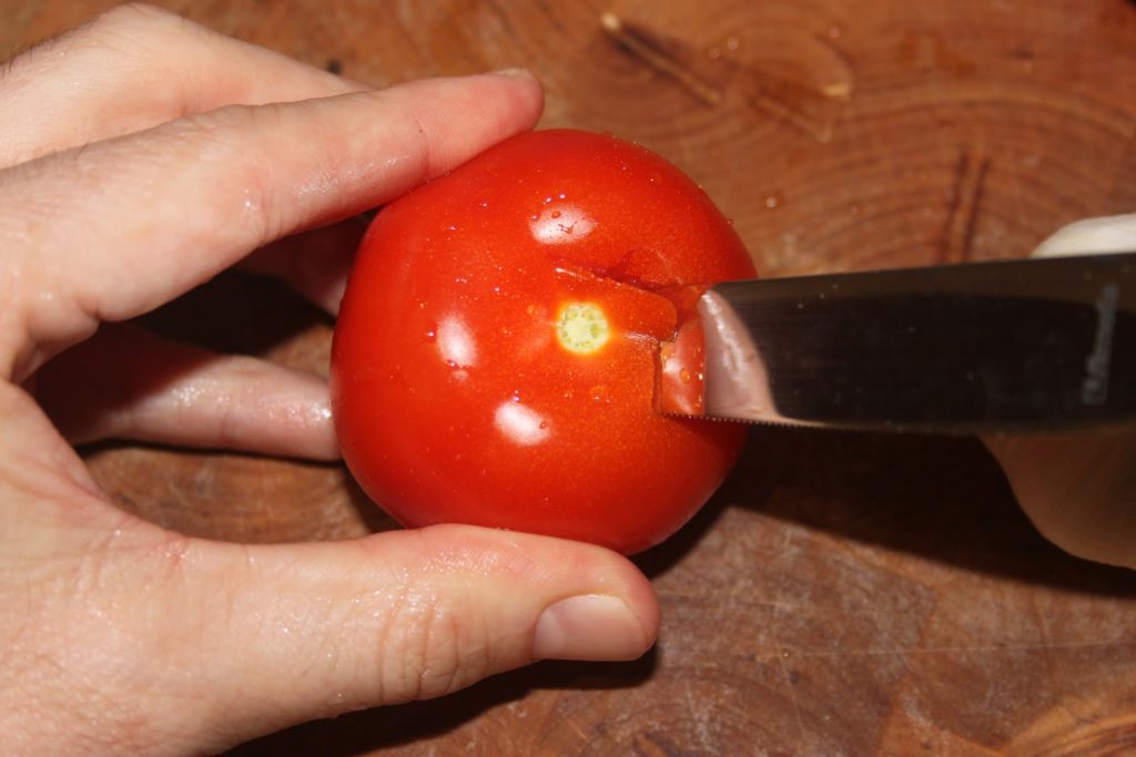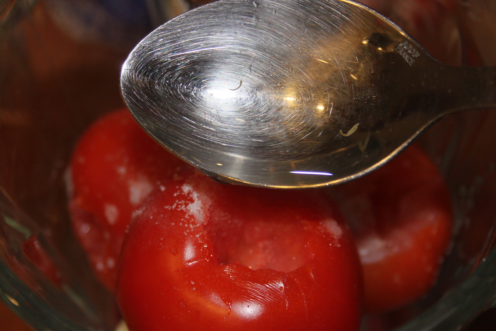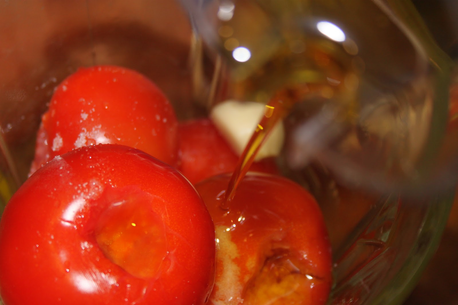 - Mettre les tomates (avec leur peau, oui oui!) dans un blender. Ajouter le vinaigre.