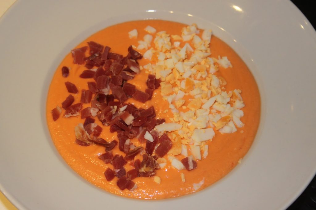 Vous connaissez tous le gaspacho. J’ai déjà posté une recette de celui-ci (cliquez ICI pour la lire). Mais connaissez-vous le salmorejo? Cette autre merveilleuse soupe froide andalouse? Il s’agit presque de la même chose, mais en plus simple, plus rapide à préparer. Il y a aussi moins d’ingrédients mais n’en est pas moins savoureuse. Cette soupe servie bien froide, est plus épaisse et titille les papilles grâce à un peu de vinaigre de vin. Cette soupe est traditionnellement consommée avec des brisures d’oeufs durs et quelques morceaux de jambon serrano! Avec les beaux jours qui reviennent, cette recette va vite être adoptée!