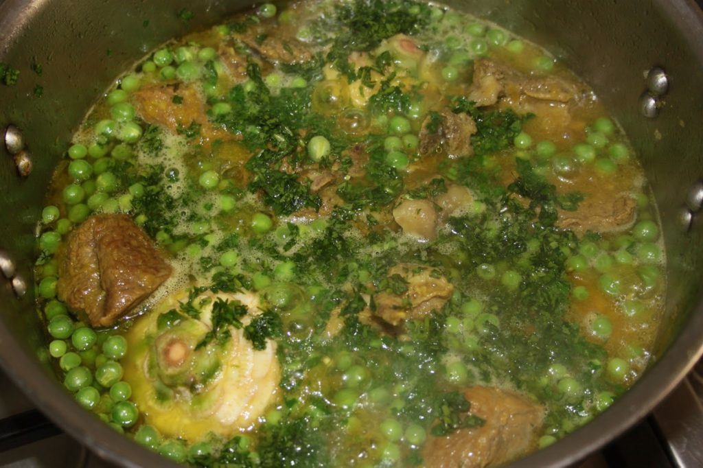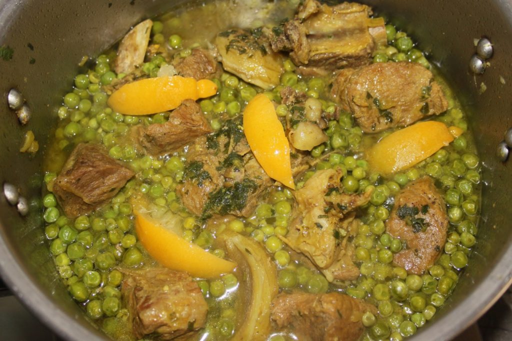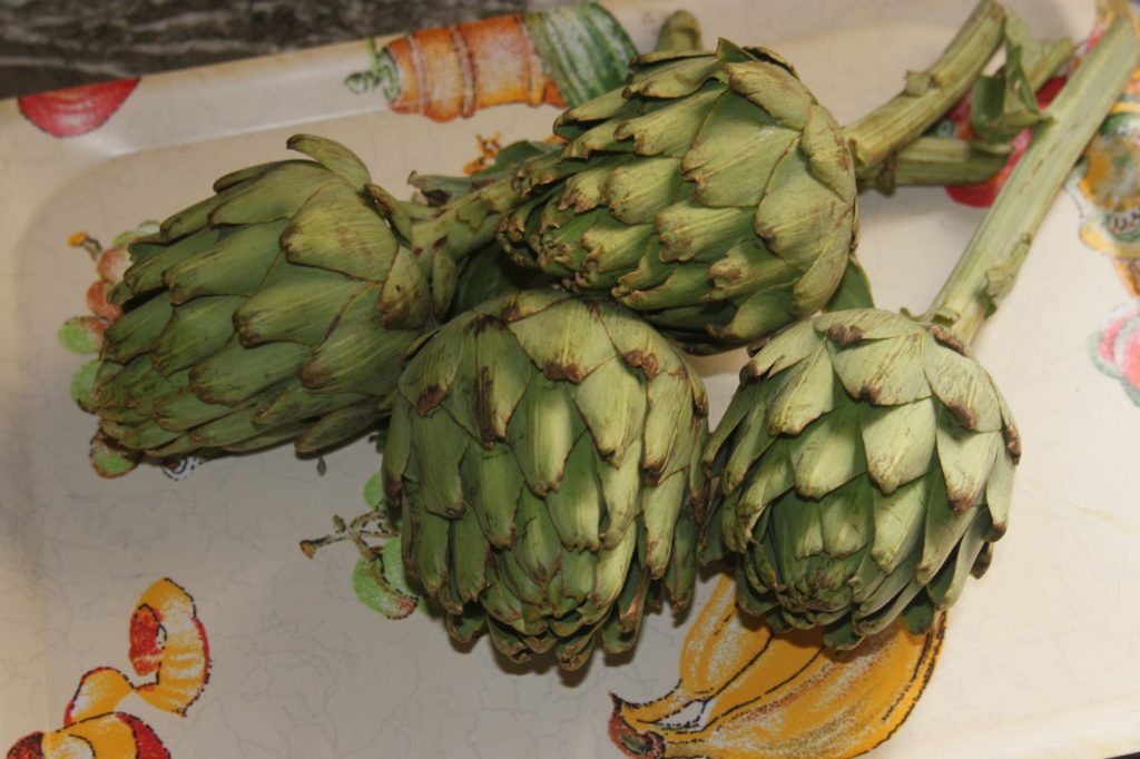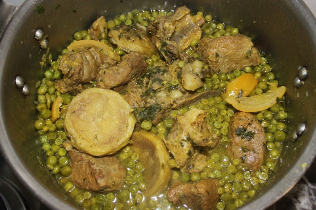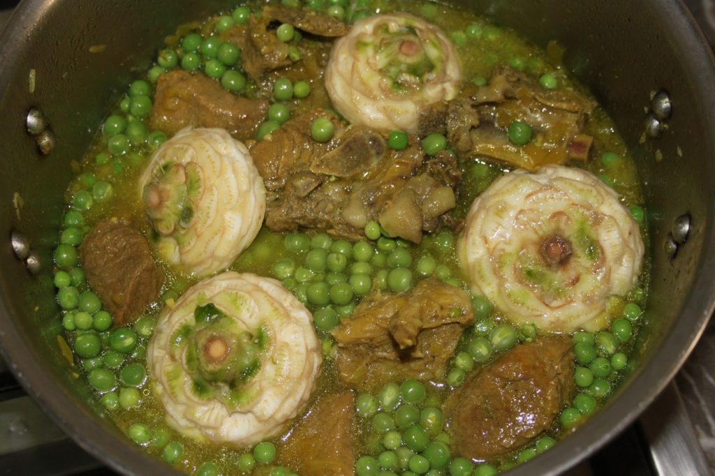 - Fermer la cocotte minute et mettre sous pression. Quand la vapeur sort, baisser le feu et laisser cuire 35-40 minutes. Si bien sûr l’on n’a pas de cocotte minute, il suffira de mettre un couvercle et de laisser cuire 1H15 ou plus. La viande doit paraitre cuite. Pendant ce temps, il faut préparer les artichauts (si on en prend des frais).