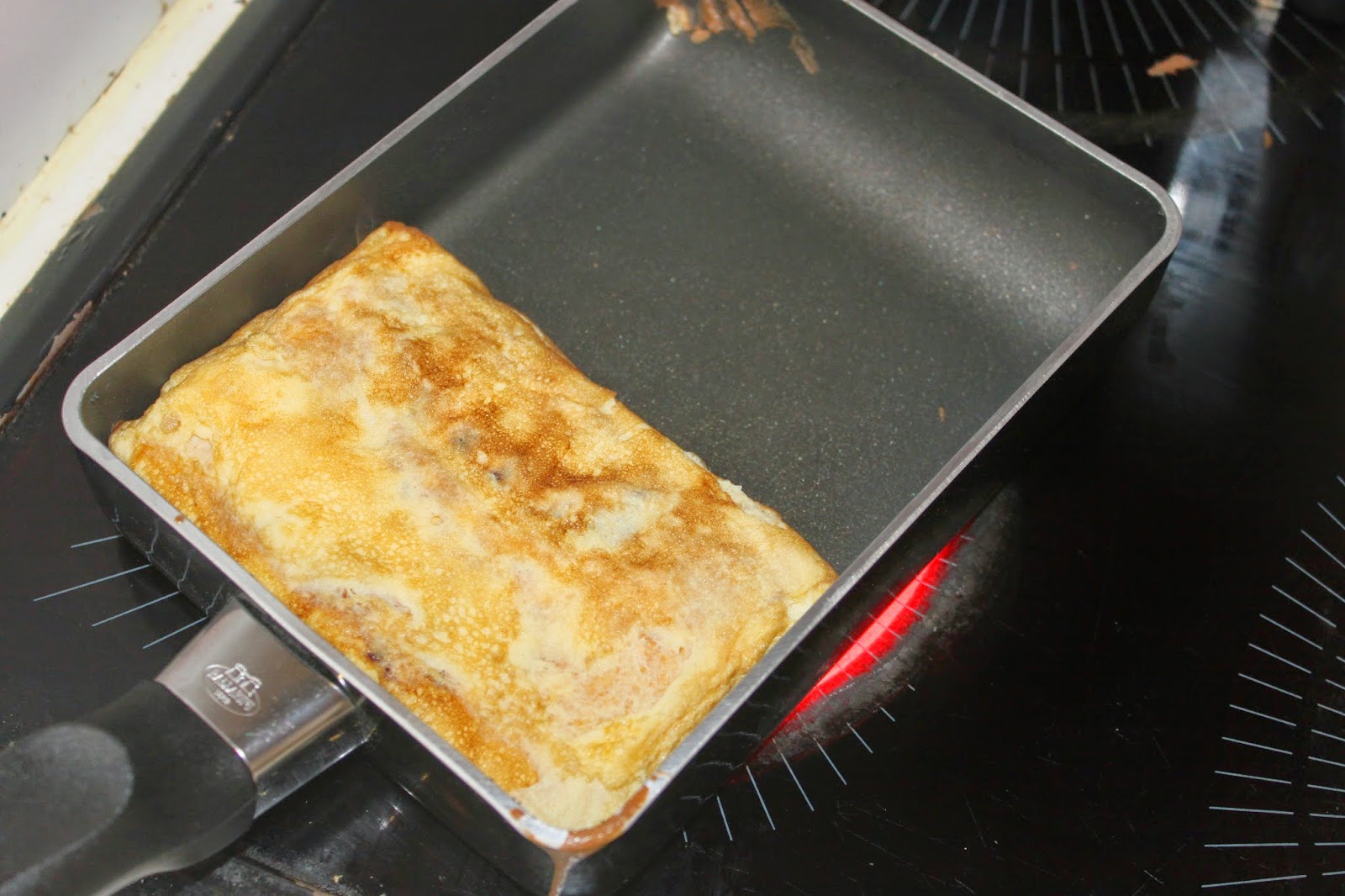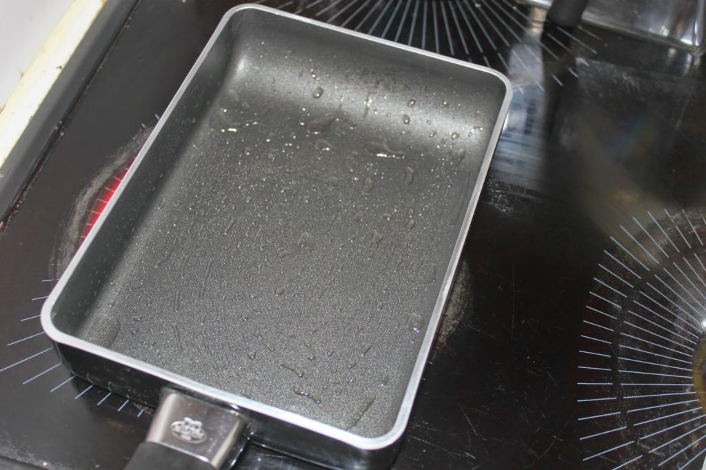 - Voici la poêle à tamagoyaki . Vous la trouverez sur internet ou toujours dans les supermarchés japonais. Huilez-la légèrement.