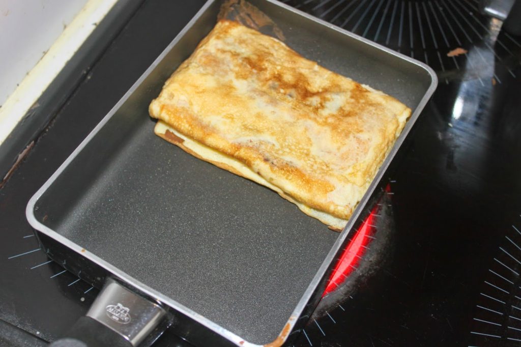 - Puis recommencez: versez le liquide, faites-le passer sous l’omelette en la soulevant avec une spatule ou des baguettes.